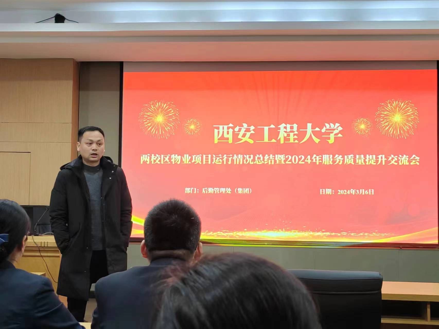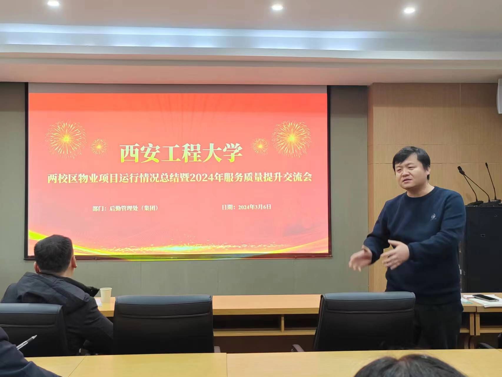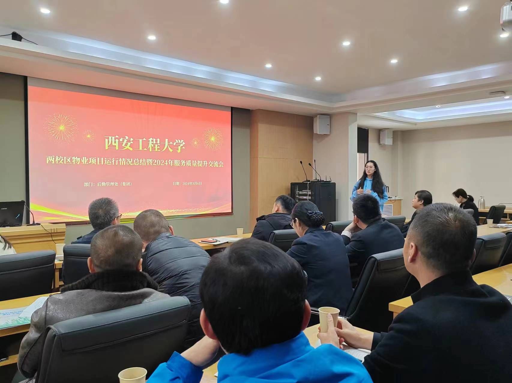 3月6日上午,beat365后勤管理处(集团)在临潼校区组织召开两校区物业项目运行情况总结暨2024年服务质量提升交流会。后勤领导班子及物业管理服务中心人员、招标采购办公室主任戴新、国内合作与校友工作处石洋、校团委李梦琦,两校区物业公司参加了交流会。会议由后勤管理处(集团)党总支书记杨森主持。