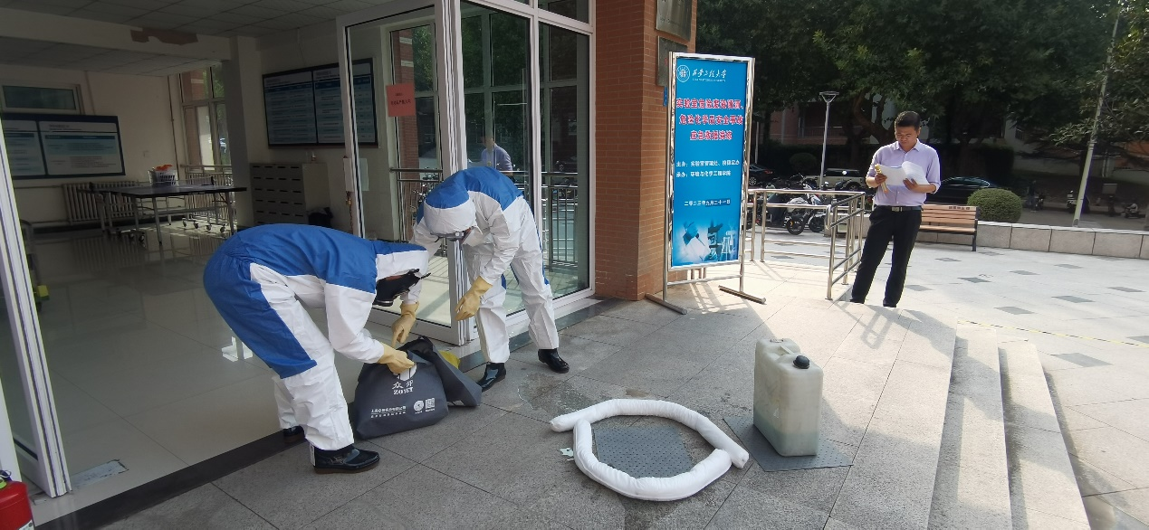 为贯彻落实《高校实验室安全规范》《beat365官方网站2023实验室检查工作实施方案》,提高师生应对突发实验室安全事件及应急处置能力,9月21日beat365在临潼校区环境与化学工程学院举行 “2023年实验室安全事故应急救援演练”活动。本次活动由实验室管理处主办,环境与化学工程学院承办,西安安备思软件有限公司协办。实验室管理处处长高飞、副处长刘许、环境与化学工程学院党委书记胡西民、院长武占省、实验室管理处工作人员、西安安备思软件有限公司工作人员以及城市规划与市政工程学院、材料工程学院、理学院的部分师生参加活动。
