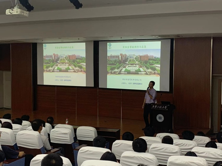 本次讲座特别邀请了西安安备思软件有限公司刘涛总经理,专门面向2023级新生作安全讲座。他结合自身长期在各高校实验室安全培训的经验,用生动的语言和鲜明的事例,从两个大的方面分别进行讲解。一方面从海因里希安全法则给大家引述了发生安全事故的四个因素,另一方面从实验室用电安全、用气安全、用水安全、危化品安全、消防安全、人员实际操作等具体内容进行相关讲解,全面细致的就实验室安全相关方面的危害、基础理论,事故预防措施,紧急处置方案等进行讲解。