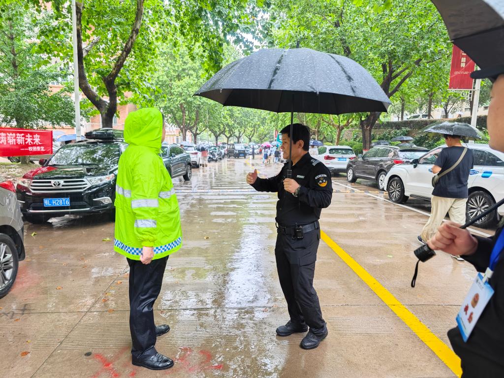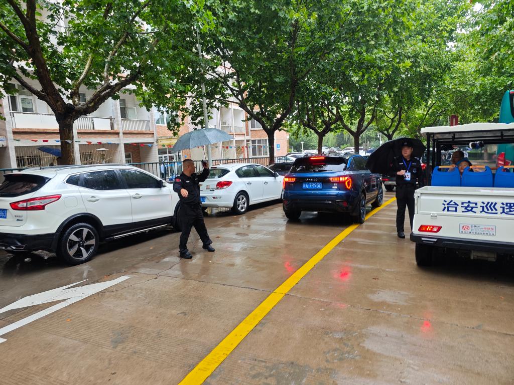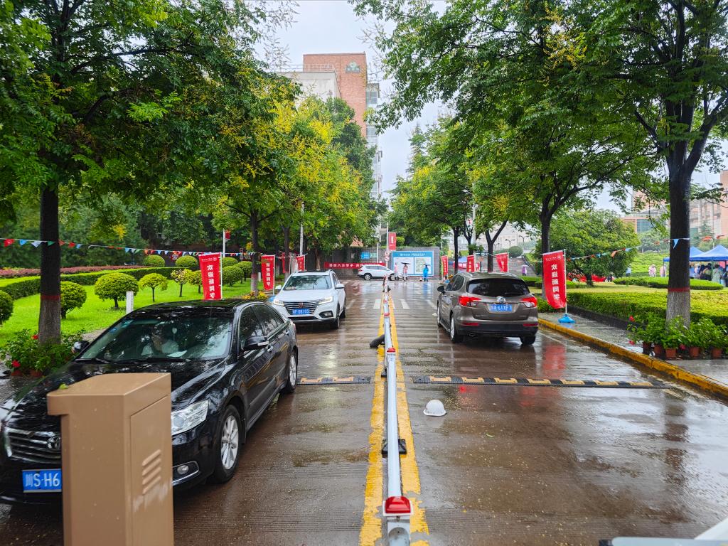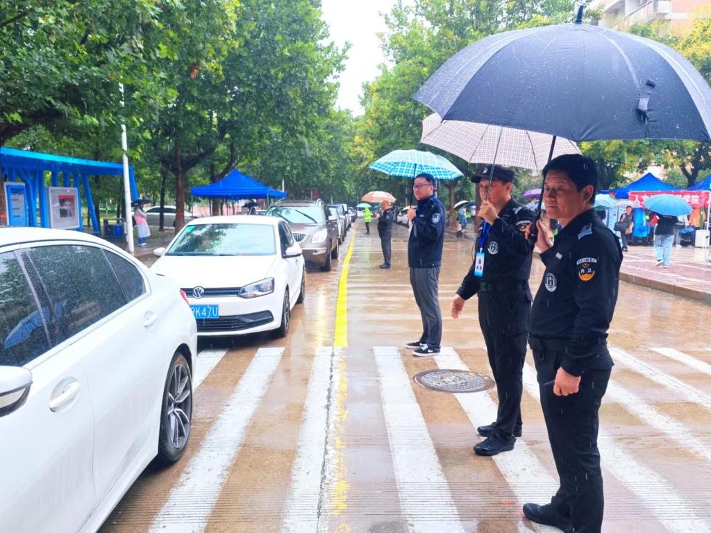 迎新工作期间,突如其来的大雨给安保工作带来更多压力,全体保卫干部和安保队员起早贪黑,不叫苦不叫累,坚守岗位挺殷担当。近三日累计进校机动车辆5600余辆,特别是迎新首日临潼校区新生报到扎堆致使主干道拥堵,保卫干部、交通民警、安保队员齐抓共管,精准发力,顶着风雨疏导来往车辆,为高峰期校内干道保畅促通提供有力保障。