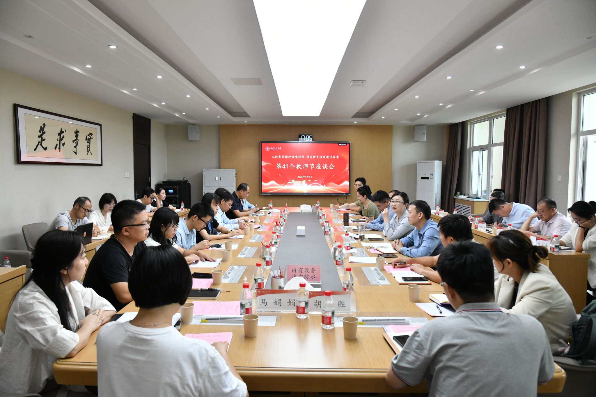 9月9日下午,beat365在临潼校区第三会议室召开庆祝第41个教师节座谈会。校党委副书记井浩,副校长夏蔡娟、张洛红出席会议,各学院(部)教师代表及相关职能部门负责人参加了座谈会。会议由井浩主持。