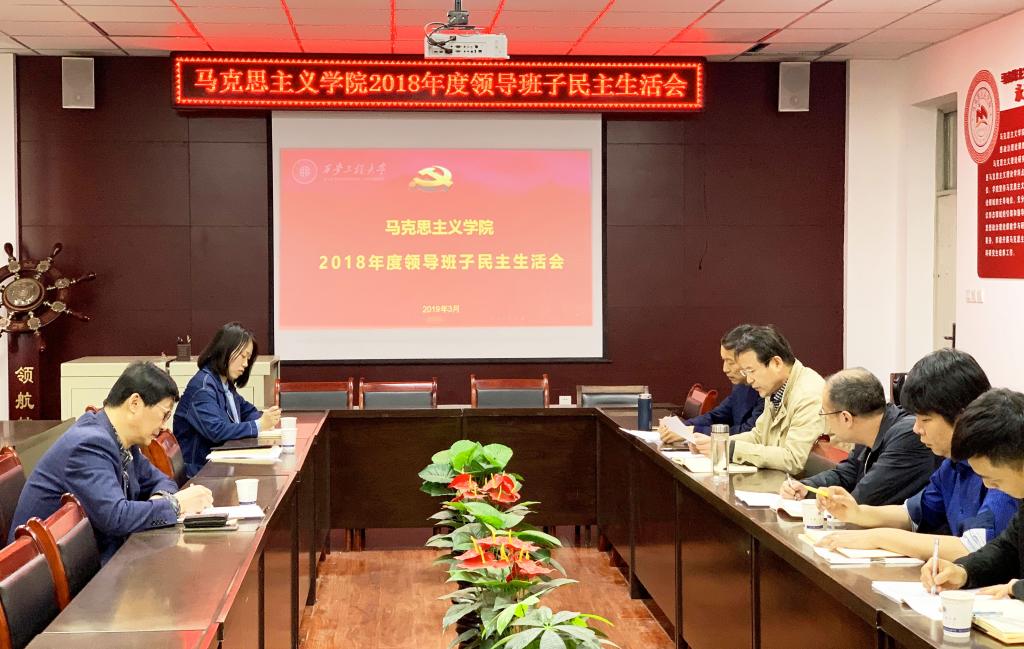 3月29日下午,马克思主义学院2018年度领导班子民主生活会在临潼校区人文楼203会议室召开。校党委书记刘江南、校第五督导组组长郑卫东到会督导。学院领导班子、党总支委员,学院分工会主席、办公室主任参加了本次民主生活会。会议由学院党总支书记宁立功主持。会上,宁立功同志通报了学院民主生活会的准备情况,对上一年度民主生活会整改落实情况代表学院班子作了对照检查,着重从政治建设、作风建设、责任担当、从严治党的工作...
