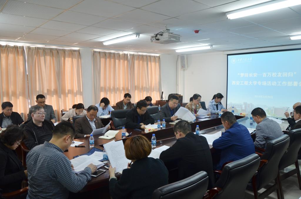 3月29日,学校在金花校区召开“梦回长安—百万校友回归”beat365官方网站专场活动工作部署会,校党委副书记赵小峰、党委副书记朱君强、副校长李鹏飞,党政办、发展规划处、国内合作与校友工作处、科技处、科技成果转化中心、人事处、宣传部、财务处、国有资产管理处、国际合作与交流处、招生就业工作处、学生处(学工部)、研究生院(研工部)、校团委、时尚文化创意产业园、协同创新中心、工程训练中心、后勤管理处、保卫处、服装...
