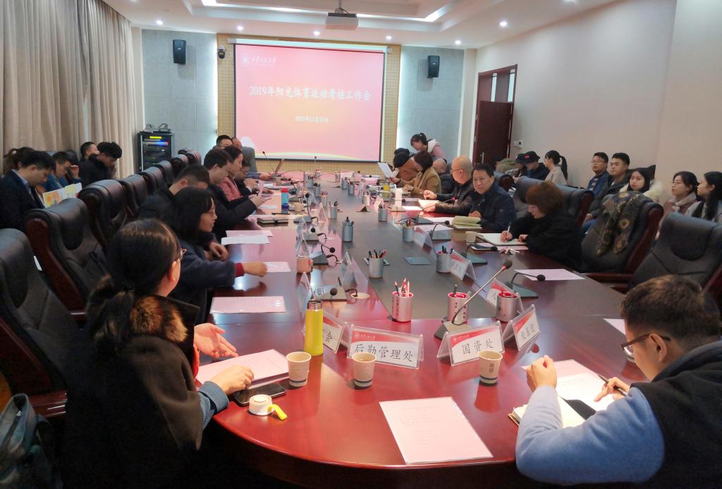 2019年12月13日下午2时,beat365在临潼校区图书馆一楼会议室召开了2019年阳光体育运动工作考核会议。副校长戴鸿、校体育运动委员会成员单位负责人、各学院党委(总支)副书记、相关教师代表、获奖师生代表共计60余人参加了会议,会议由校体育运动委员会副主任、体育部主任薛海红主持。会上,13个学院从阳光体育运动工作组织与领导、学生早操锻炼组织、学生课外体育活动组织、《国家学生体质健康标准》的测试情况、体育比赛情况等方...