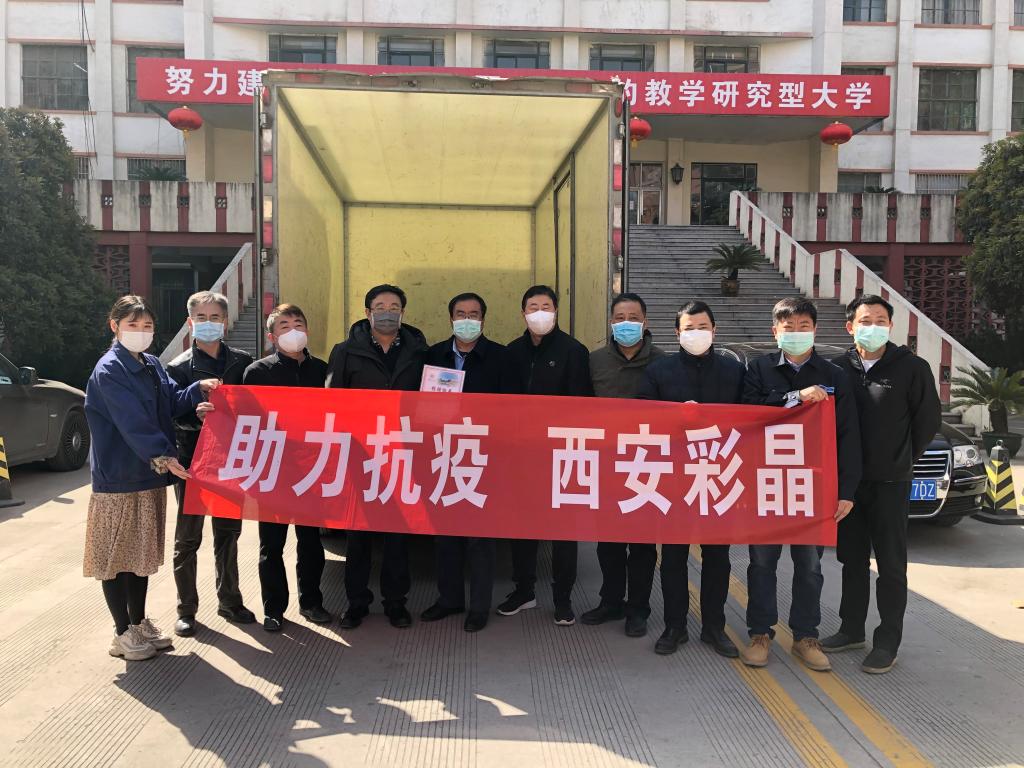 在新冠肺炎疫情防控工作的决胜时刻,经纺织科学与工程学院联系,西安彩晶光电科技股份有限公司向beat365捐赠过氧乙酸消毒液。3月17日上午,西安彩晶光电科技股份有限公司将抗疫物资送达beat365金花校区,beat365副校长、防控工作领导小组副组长李鹏飞、殷永建代表学校接收了捐赠物资。李鹏飞向西安彩晶光电科技股份有限公司人力资源总监赵峰颁发了捐赠证书,并对企业支持学校防疫工作表示真挚感谢。他希望双方继续加强联系,疫情结束后,...