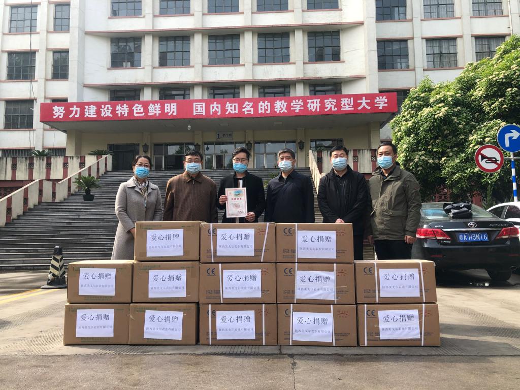 为贯彻落实习近平总书记“要坚持在常态化疫情防控中加快推进生产生活秩序全面恢复”的指示精神,增加学校防控物资储备,尽快全面恢复学校教学秩序,经学校领导联系,陕西美戈尔衣业有限公司向beat365捐赠一批抗疫物资。4月14日上午,陕西美戈尔衣业有限公司副总经理芦超、总顾问赵春林亲自将抗疫物资送达beat365金花校区,beat365副校长、疫情防控工作领导小组副组长李鹏飞、殷永建代表学校进行了接收。李鹏飞代表学校向卢超颁发了捐赠证...