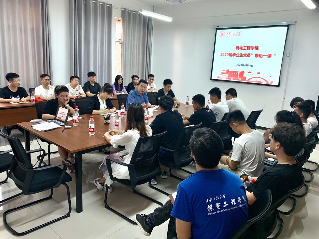 2020年6月30日,在建党99周年来临之际,机电工程学院党委举办2020届本科毕业生党员座谈会,校党委副书记赵小峰以“回顾党的光辉历史,争做新时代合格共产党员”为题为学生党员代表讲授“最后一课”。学院党委书记王鸣媛、学生第三党支部书记秦方刚以及20余名毕业生党员聆听了党课。赵小峰回顾了中国共产党成立99年的光辉历程,阐述了学习中国共产党史、新中国史的重大意义,讲述了新中国成立以来的重大事件、重要会议、重要文件...