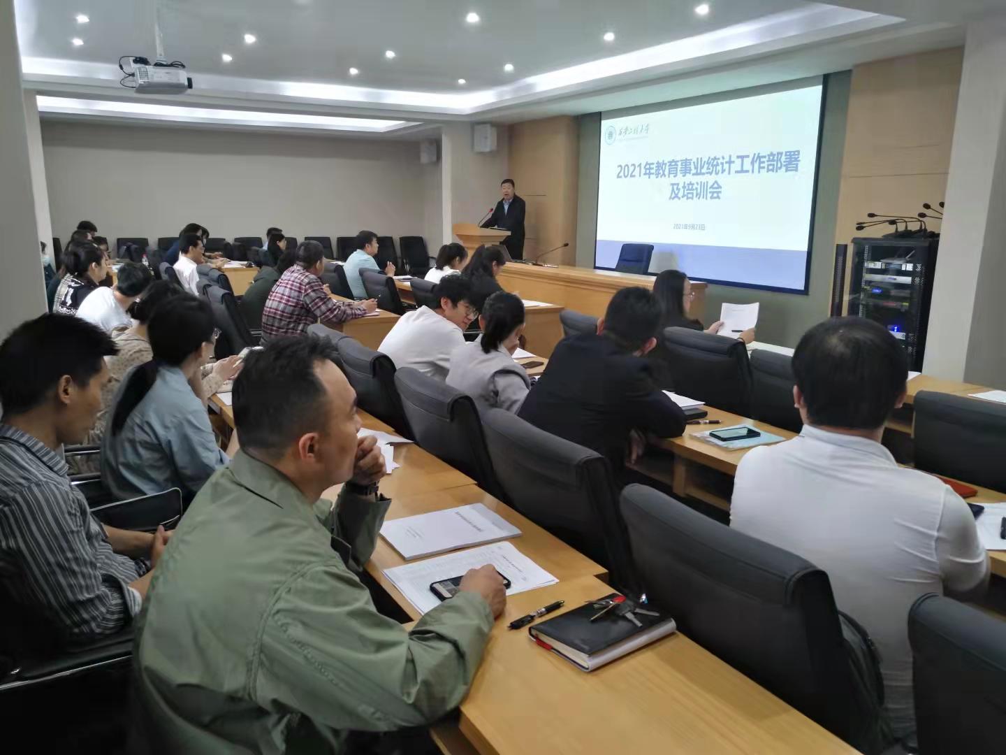 为贯彻落实教育部、陕西省教育厅有关教育统计工作要求,切实做好2021年教育统计改革各项工作任务。2021年9月23日上午,beat365在临潼校区321会议室召开2021年教育事业统计工作部署及培训会。学校各数据归口管理部门负责人及统计工作人员40余人参加了会议,副校长、校教育统计工作领导小组副组长殷永建出席了会议,会议由发展规划处处长王劲伟主持。王劲伟首先传达了《陕西省教育厅办公室关于做好2021年全省教育事业统计工作的通知...