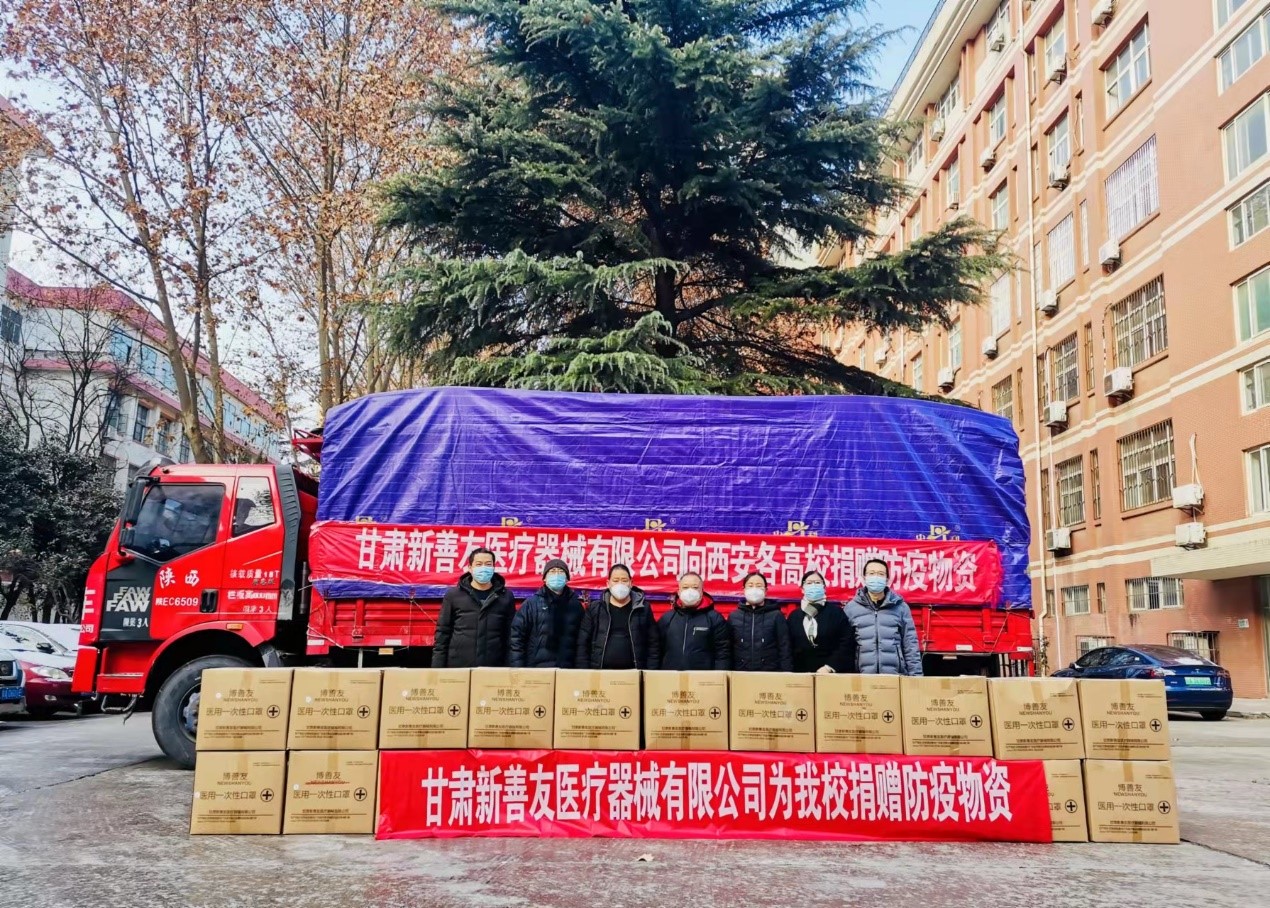 西安本次疫情爆发后,各地校友组织、校友企业、合作企业纷纷表示关切,国内合作与校友工作处和国有资产管理处第一时间对接,了解防疫物资需求,积极联系校友组织、校友企业、合作企业,寻求支持。12月26日,大雪初晴,纺织科学与工程学院的合作企业——甘肃新善友医疗器械有限公司向beat365捐赠一批总价值10万元的防疫物资,包括KN95 口罩,KF94 鱼型口罩,一次性医用口罩。甘肃新善友医疗器械有限公司自2020年2月成立以来,纺织科...
