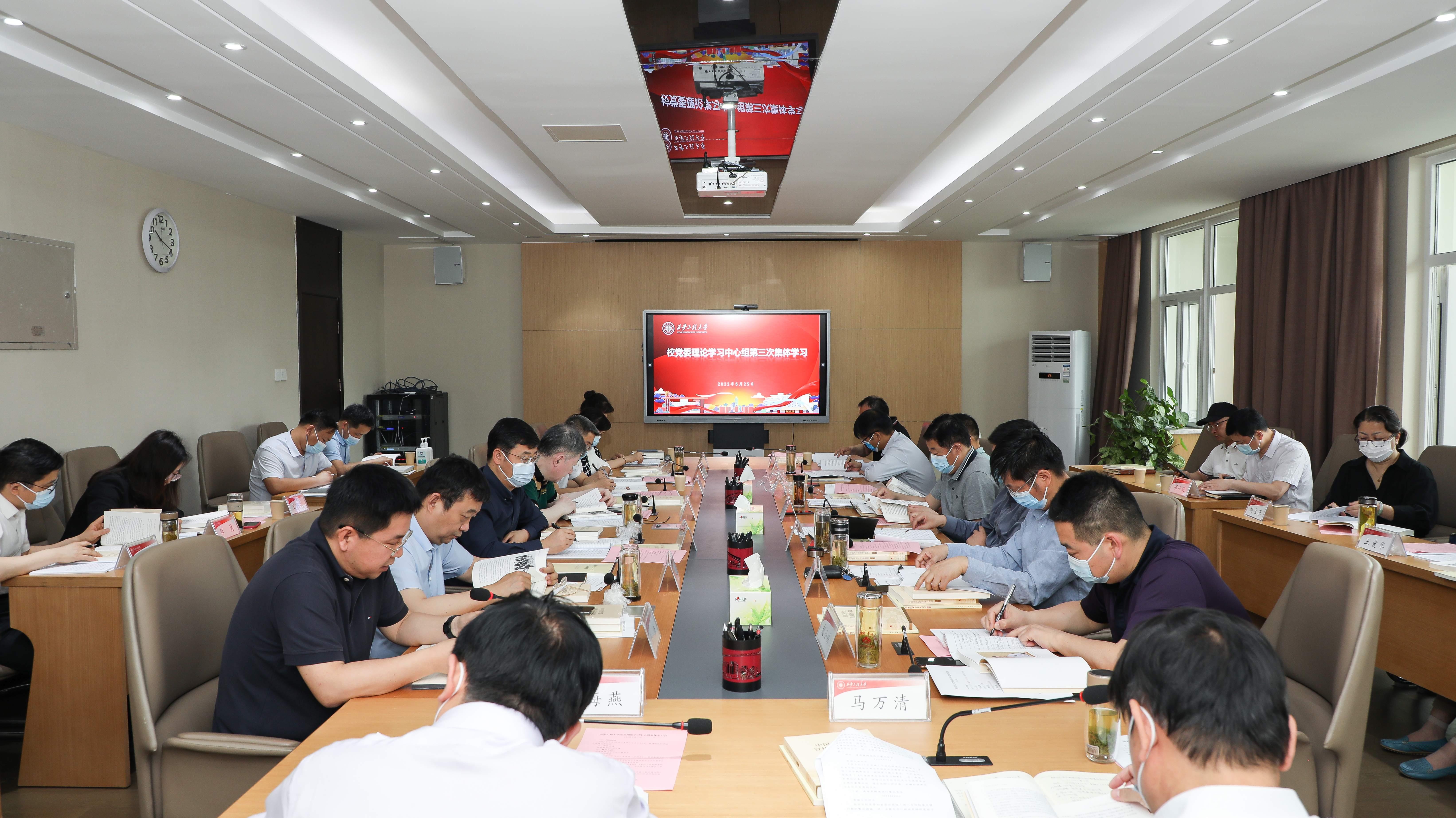 5月25日,beat365在临潼校区第三会议室召开党委理论学习中心组集体学习会。会议由校党委书记马万清主持,校党委理论学习中心组全体成员参加了会议。会上,大家集体学习了《中国共产党宣传工作简史》,校党委副书记井浩进行了重点发言;学习了《总体国家安全观学习纲要》,党委委员、副校长朱永民进行了重点发言;党委组织部部长黄海峙领学了《干部选拔任用工作条例》《县以上党和国家机关党员领导干部民主生活会若干规定》《中国共...