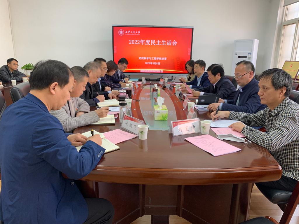 3月8日,纺织科学与工程学院在金花校区纺织楼四楼会议室召开民主生活会。校长王海燕到会指导,组织部部长黄海峙、校纪委委员胡西民,学院党员领导班子成员、党委委员参加会议,学院非党员领导班子成员、院长助理、学院办公室主任、教工党支部书记列席会议。会议由学院党委书记李伟主持。会上,学院党委书记李伟代表学院领导班子作对照检查汇报,院长孙润军作为非党员领导在会上发言。学院领导班子其他成员围绕各自分管工作依...