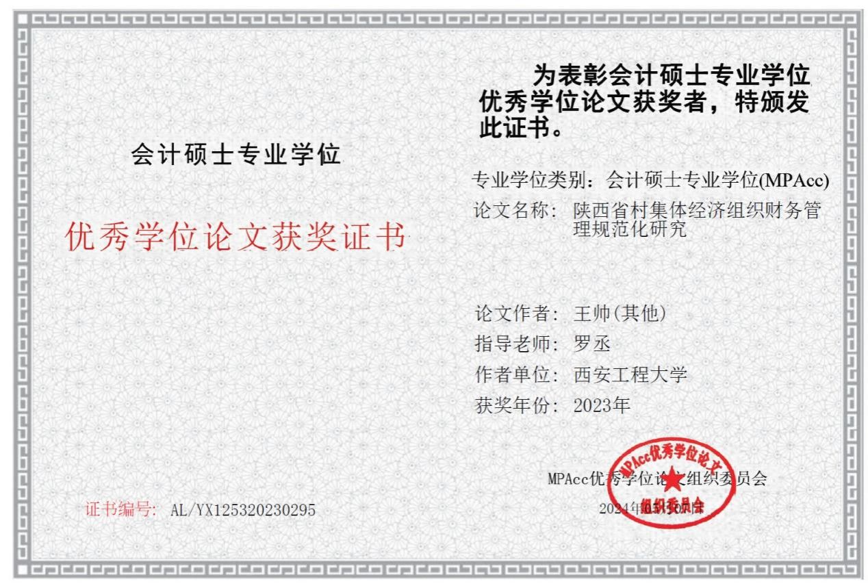 近日,全国会计专业学位研究生教育指导委员会公布了2023年全国MPAcc优秀学位论文评选结果。beat365管理学院研究生王帅同学撰写的《陕西省村集体经济组织财务管理规范化研究》(指导老师:罗丞)获评优秀学位论文。这是beat365首次获得全国MPAcc优秀学位论文,该论文也是2023年陕西省唯一一篇入选的MPAcc优秀学位论文。全国MPAcc优秀学位论文评选由全国会计专业学位研究生教育指导委员会指导,MPAcc优秀学位论文组织委员会主办并联合多...