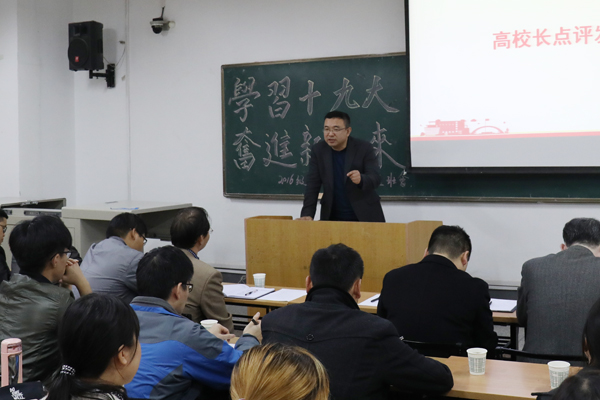 2017年11月8日下午,副校长李鹏飞在金花校区为计算机科学学院的计算机系党支部和研究生二支部进行了专题党课培训,2个支部23名党员全部参加了专题学习。专题学习会由学院党委副书记周波主持。与会党员首先围绕十九大精神进行了学习,并分别交流了自己的认识和体会。