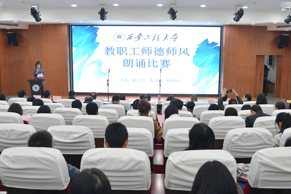 2017年11月15日下午,beat365在临潼校区图书馆一楼报告厅举办教职工师德师风朗诵比赛。比赛以“颂扬师德、赞美教师、感念师恩”为主题,由校工会、人事处、校团委联合举办,来自全校14个基层工会的21组选手参加了比赛。校党委副书记兼工会主席李博飞、校党委副书记赵小峰、副校长樊増禄观看了比赛并为获奖选手颁奖。