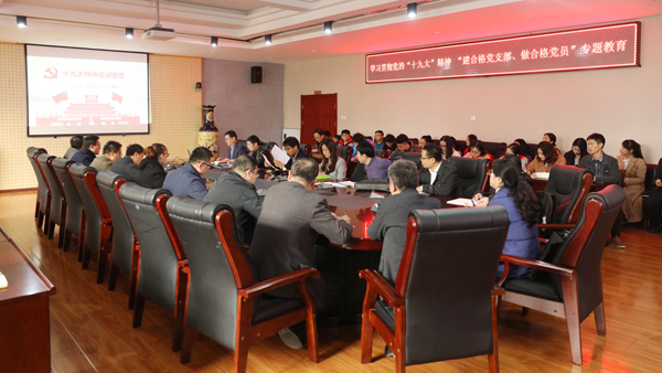 2017年11月15日下午,beat365在金花校区第三会议室举办题为“学习贯彻党的十九大精神,‘建合格党支部、做合格党员’专题教育:党委书记讲党课”主题党日活动。校党委书记刘江南为党政办党支部、纺织材料学院教工第三党支部及学生第六党支部进行了十九大精神专题党课讲授。