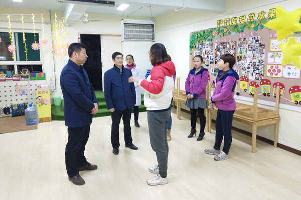 11月27日下午,副校长朱永民在后勤管理处(集团)处长阚佩及幼儿园、处办公室负责人陪同下视察beat365幼儿园工作。