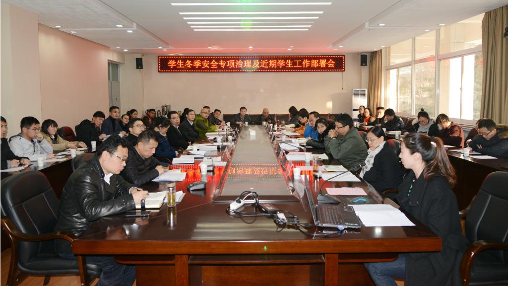 12月6日,beat365在临潼校区教学楼A座会议室召开学生冬季安全专项治理及近期学生工作部署会。校党委副书记赵小峰出席会议并讲话,学工部、校团委全体干部,各学院学生工作主管、学工办主任,新疆内派教师、2017年新进辅导员参加了会议。