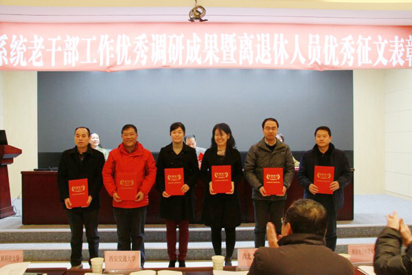 2017年12月20日,beat365党委副书记赵小峰和离退休工作办公室主任薛翠萍参加了教育厅举办的“2017年全省教育系统老干部工作调查优秀成果暨改革开放以来的陕西征文活动表彰会议”。