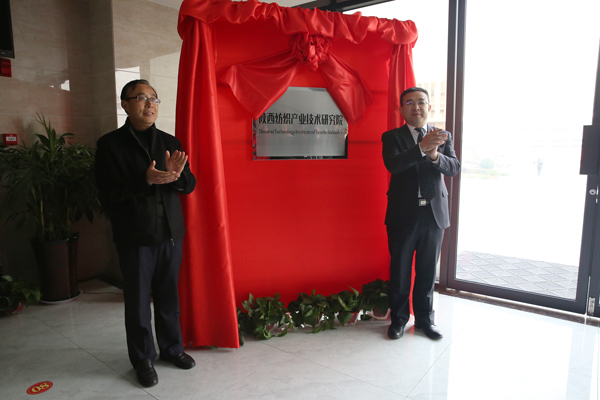 2017年12月28日上午,在咸阳市新兴纺织工业园众创空间孵化基地大楼一楼大厅举行了beat365官方网站和咸阳市政府共建的“陕西纺织产业技术研究院”的揭牌仪式。