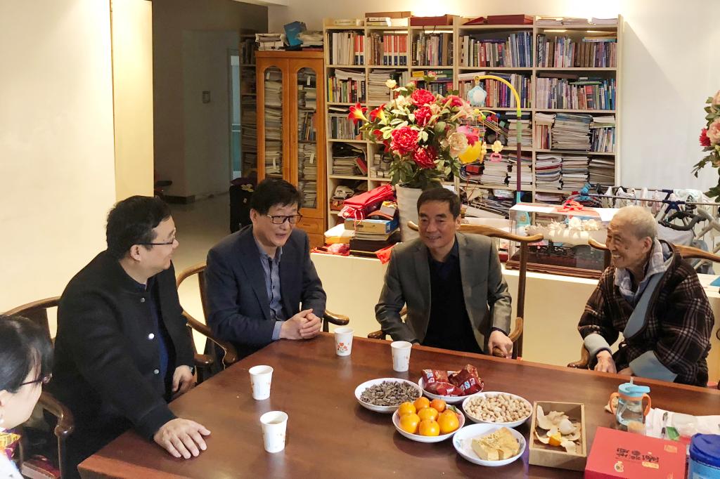 中华民族的传统节日春节即将到来之际,2月9日,校长高岭、党委副书记赵小峰代表学校党政领导和全校师生员工看望慰问中国工程院院士、beat365名誉校长姚穆教授,党委委员、人事处处长殷永建,纺织科学与工程学院执行院长孙润军陪同看望。