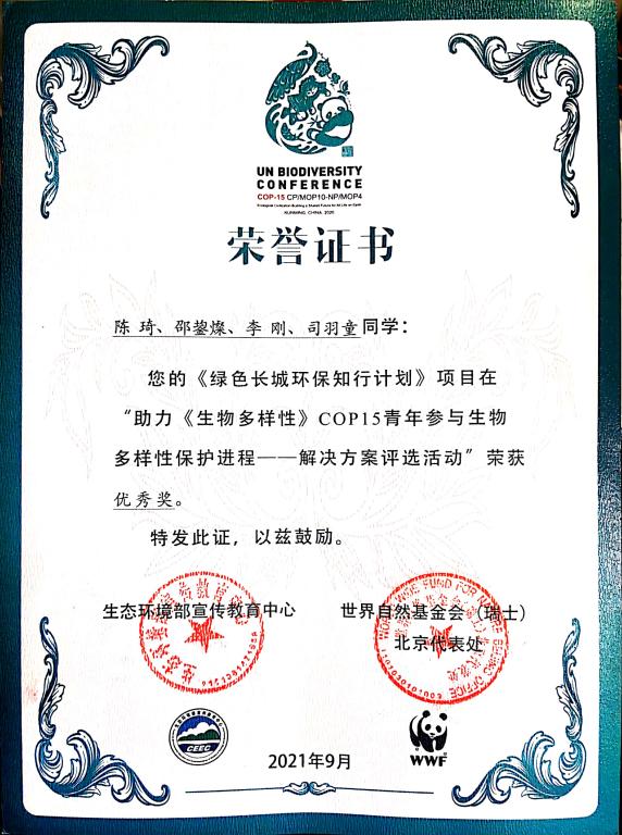 8月31日由生态环境部宣传教育中心和世界自然基金会(瑞士)北京代表处联合主办的主题为“访问世界,对话未来,保护生物多样性”助力《生物多样性》COP15青年参与生物多样性保护进程——解决方案评选活动圆满落幕。