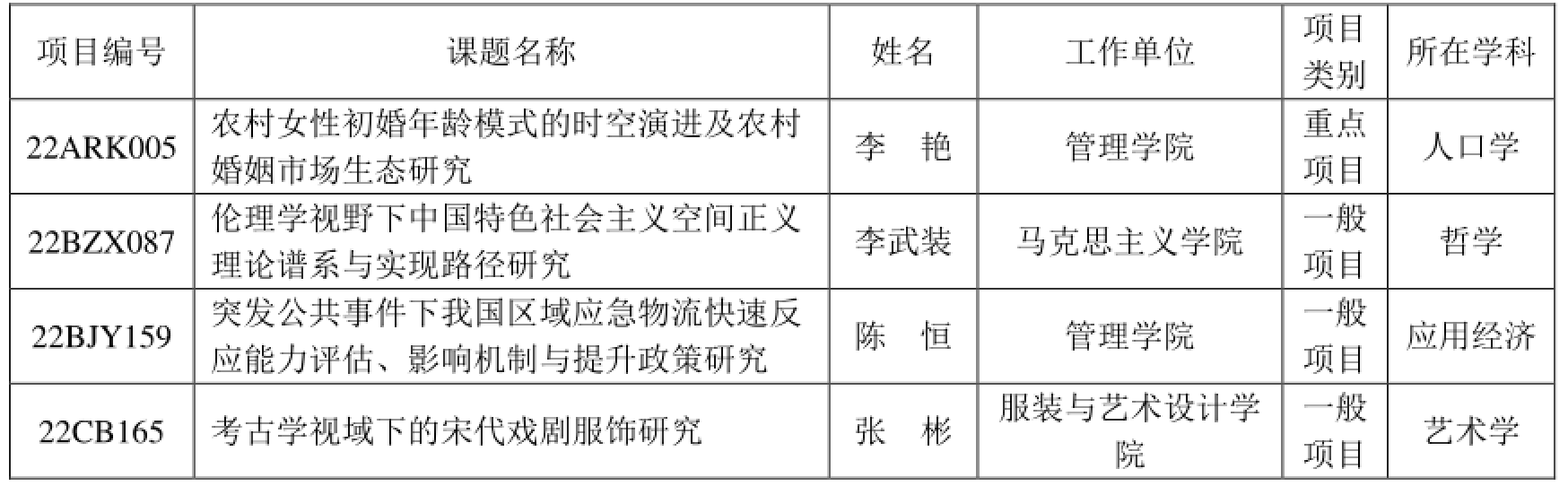 近日,全国哲学社会科学规划办公室和全国艺术科学规划领导小组办公室分别公布了2022年度国家社会科学基金项目和2022年度国家社科基金艺术学项目的立项名单,beat365共获批4项,其中,管理学院院长李艳教授主持申报的《农村女性初婚年龄模式的时空演进及农村婚姻市场生态研究》获批国家社科基金重点项目(批准号:22ARK005),这是beat365历史上首次获批国家社科基金重点项目,实现了beat365人文社科类国家级重点项目零的突破。