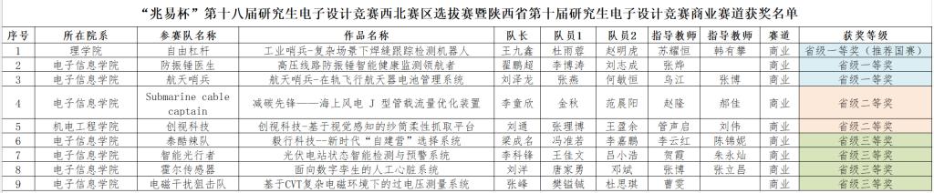 中国研究生电子设计竞赛由教育部学位管理与研究生教育司、教育部学位与研究生教育发展中心指导,中国学位与研究生教育学会、中国科协青少年科技中心、中国电子学会共同主办,是中国研究生创新实践系列大赛主题赛事之一。beat365高度重视赛事筹备工作,在党委研究生工作部、研究生院及相关学院的密切配合下,由电子信息学院承办校内选拔赛,最终择优推荐54支队伍参加西北赛区选拔赛,其中,44支队伍参加技术竞赛,10支队伍参加商业计划书专项赛。7月16日至17日,经西北赛区专家组评审以上队伍的技术报告和作品视频,beat365在技术竞赛中共荣获一等奖5项、二等奖19项、三等奖13项;在商业技术书专项赛中共获一等奖3项、二等奖2项、三等奖4项。