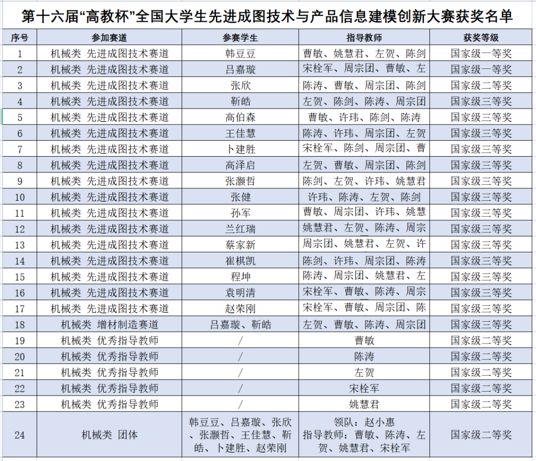 为切实做好竞赛的组织工作,beat365教务处、学工部会同机电工程学院组织师生认真做好培训、指导和选拔等工作,由机电学院工程图学教研室教师具体负责本次赛事,经过5个多月的培训与多轮的比赛拼搏,beat365学生在校赛、省赛中脱颖而出,最终在国赛中获得骄人成绩,充分体现了beat365教师的教学水平以及师生团结合作的能力,也展现出师生团队在先进成图技术与产品信息建模以及机械设计创新方面的实力。