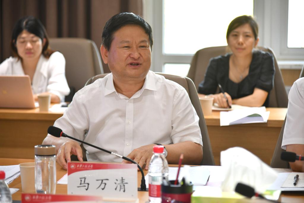 马万清作总结讲话,他充分肯定了学校教材建设工作取得的成绩,并对今后进一步加强教材建设提出了明确的要求:一是要坚持党对教材工作的全面领导。把强化政治建设作为教材工作的首要任务,牢牢把握教材建设的政治方向和价值导向,深入推进习近平新时代中国特色社会主义思想铸魂育人工作,把党的领导贯穿教材工作的全领域、全过程、各环节。二是要持续做好意识形态管理。加强教材全过程管理,严格教材审核把关,教材选用要时刻坚持“凡编必审”“凡选必审”,守牢教材意识形态责任阵地,对政治上把握不到位的教材坚决实行“一票否决”。三是要规范做好教材采购工作。加强监管,创新采购模式,建立公开透明完善的制约机制,坚决防范、坚决规避采购风险,积极为学生自愿购买教材争取最大优惠,提高学校教材采购工作的效率与质量,更好地为教学和广大师生服务。四是要科学高效的推进优秀教材建设。健全完善政策导向、激励机制和评价体系,增强系统思维,找准突破口,另辟新赛道,积极引导高水平教师立足特色学科、新兴学科、交叉学科编写具有影响力的高质量教材,推进学校教材建设取得标志性成果。(撰稿:周丹 审稿:夏蔡娟)