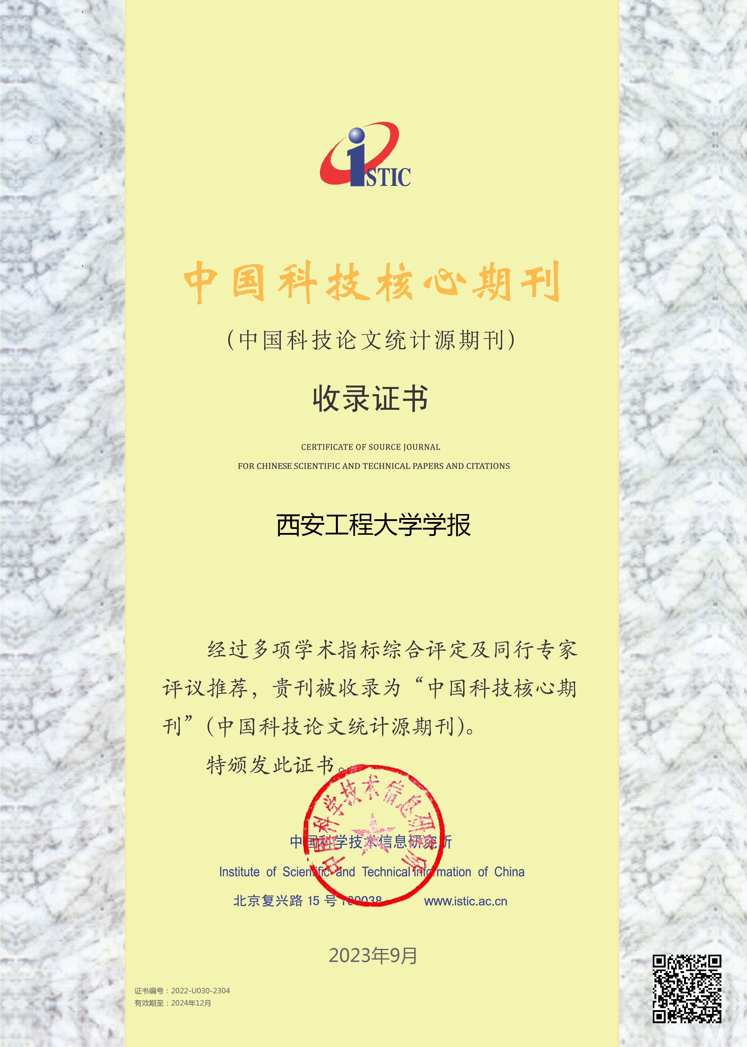 9月20日,中国科学技术信息研究所公布了“2023年版中国科技核心期刊目录”,beat365主办的《beat365官方网站学报》《纺织高校基础科学学报》再次入选。两刊的再次入选意味着其学术水平和影响力得到了进一步的认可和肯定,同时也意味着两刊在推动学术研究、促进行业发展方面将发挥更加重要的作用。
