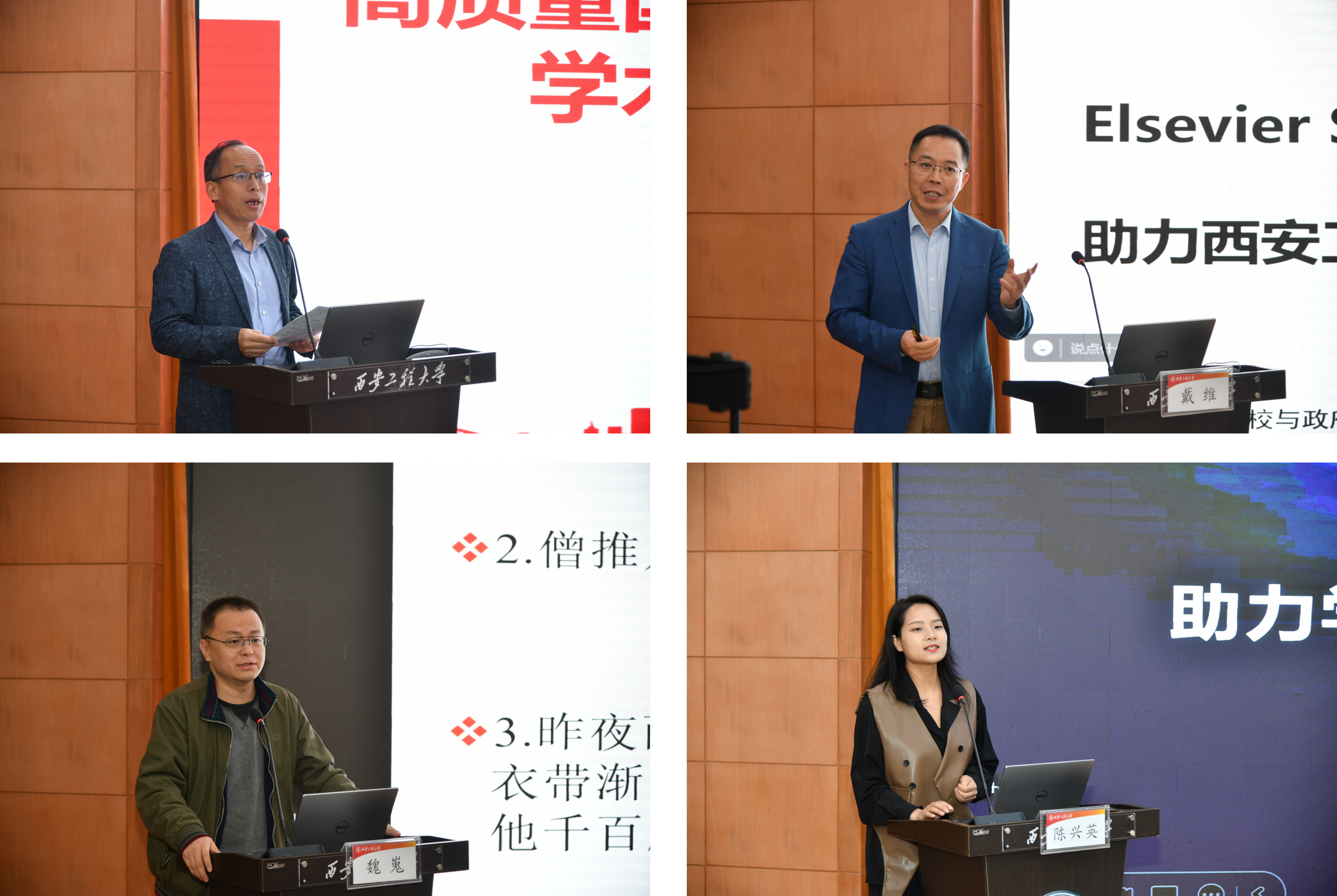 嘉宾报告环节,两个半场分别由西安交通大学图书馆副馆长杨峰和西北工业大学图书馆副馆长郝保权主持。七个专题报告紧密围绕国内外高质量数据库的使用,阐述了数据资源在科研产出和学术影响力提升方面的重要意义。其中,爱思唯尔大学与政府部总监戴维及超星集团高级讲师陈兴英分别以ScienceDirect数据库和超星发现平台为例阐释了beat365科研表现分析,并对如何利用高质量数据库支持科研以及提升学术影响力提供了建议。西安理工大学陕西汉江学者特聘教授魏嵬、宁波大学外国语学院教授雷军,beat365计算机科学学院副院长张凯兵、环境与化学工程学院教授李云锋、电子信息学院副教授王文杰分别结合数据库的海量文献资源及自身的科研经历,在如何撰写高水平论文及提升科研水平方面作了精彩的专题报告。研讨会气氛浓厚,线上、线下嘉宾和师生代表认真聆听讲座。