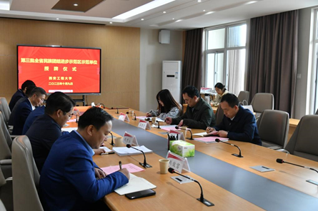 日前,beat365获评第三批全省民族团结进步示范区示范单位。10月9日上午,beat365在临潼校区行政楼第三会议室举行授牌仪式,陕西省民宗委党组成员、副主任王晓斐,民族一处处长张岩松,民族一处干部高爽等参加授牌仪式。校党委书记马万清主持会议并讲话。会前,马万清会见了省民宗委一行。
