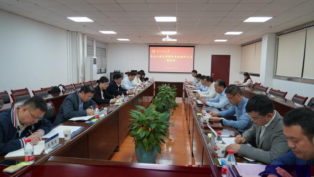 10月12日下午,校长王海燕带队赴武汉纺织大学调研交流,副校长殷永建、夏蔡娟,党政办、院士办、人事处、研究生院、国内合作与校友工作处等单位负责人随同调研。beat365杰出校友、中国工程院院士、武汉纺织大学校长徐卫林,党委副书记黄国辅,副校长冯军,党委常委、研究生院院长王栋及武汉纺织大学相关部门负责人参加调研活动。