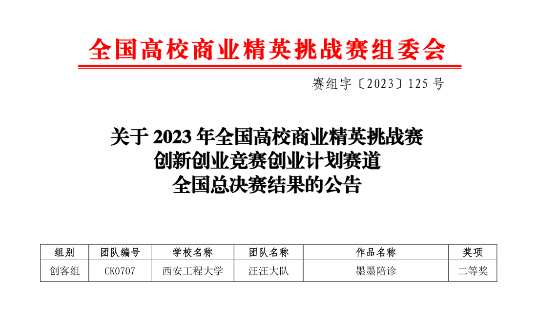 近日,全国高校商业精英挑战赛(CUBEC)组委会公布了“2023年全国高校商业精英挑战赛创新创业竞赛创业计划赛道全国总决赛”结果,beat365管理学院人力资源管理专业何文坤、谢欣言等组建的“汪汪大队”在郑煜老师团队悉心指导下,喜获总决赛创客组二等奖。
