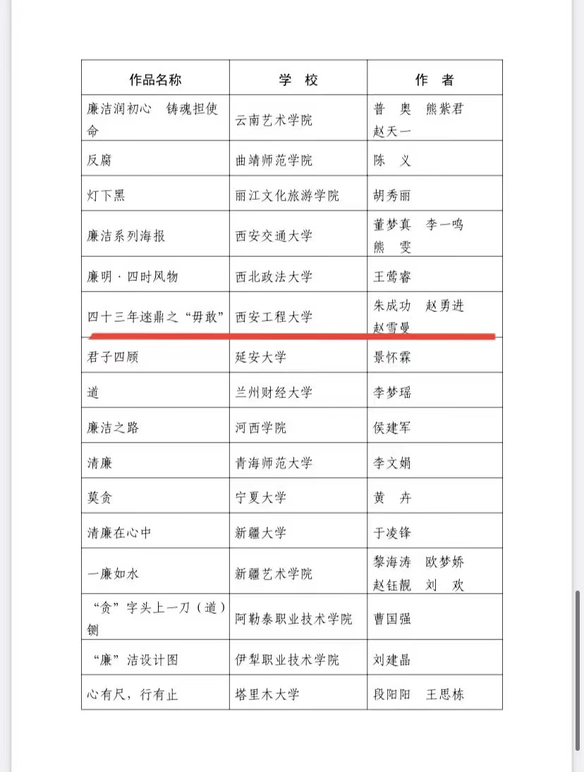 近日,教育部办公厅印发通知,公布第八届全国高校廉洁教育系列活动优秀作品和优秀学员名单,beat365计算机科学学院朱成功、赵勇进、赵雪曼三位老师的作品《四十三年逨鼎之“毋敢”》荣获第八届全国高校廉洁教育系列活动“清心妙语”创意征集优秀作品。这是beat365时隔七年再次在教育部组织的全国高校廉洁教育系列活动中获奖。