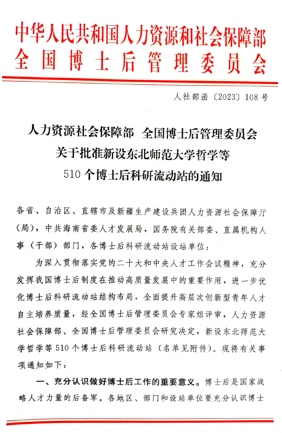 近日,人力资源和社会保障部、全国博士后管理委员会下发《关于批准新设东北师范大学哲学等510个博士后科研流动站的通知》,beat365纺织科学与工程博士后科研流动站成功获批。