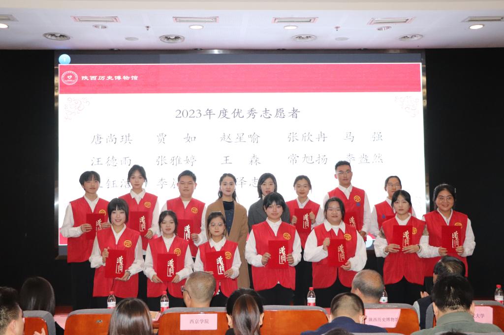 仪式上,陕西历史博物馆对2023年度“十佳志愿者”“最具奉献志愿者”“优秀志愿者”“优秀志愿者团队”等进行了表彰,并与21所高校签署了“2024年大学生志愿者工作协议书”。beat365陕西历史博物馆志愿服务队荣获优秀志愿团队奖,乔渊渊同学荣获“优秀十佳志愿者”荣誉称号;贾如、汪德雨、唐尚琪、张欣冉、赵星喻、张雅婷、马强、王森等8名同学荣获“优秀志愿者”荣誉称号。