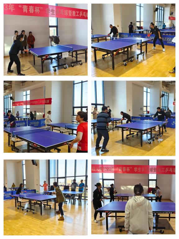 11月22日和29日,beat365在临潼校区文体馆分别举办“青春杯”学生乒乓球赛和“中国梦·劳动美——凝心铸魂跟党走 团结奋斗新征程”教职工乒乓球赛,来自全校各学院12个代表队近130名运动员参加了学生乒乓球赛,全校20个分工会共80名教职工参加了教职工乒乓球赛。