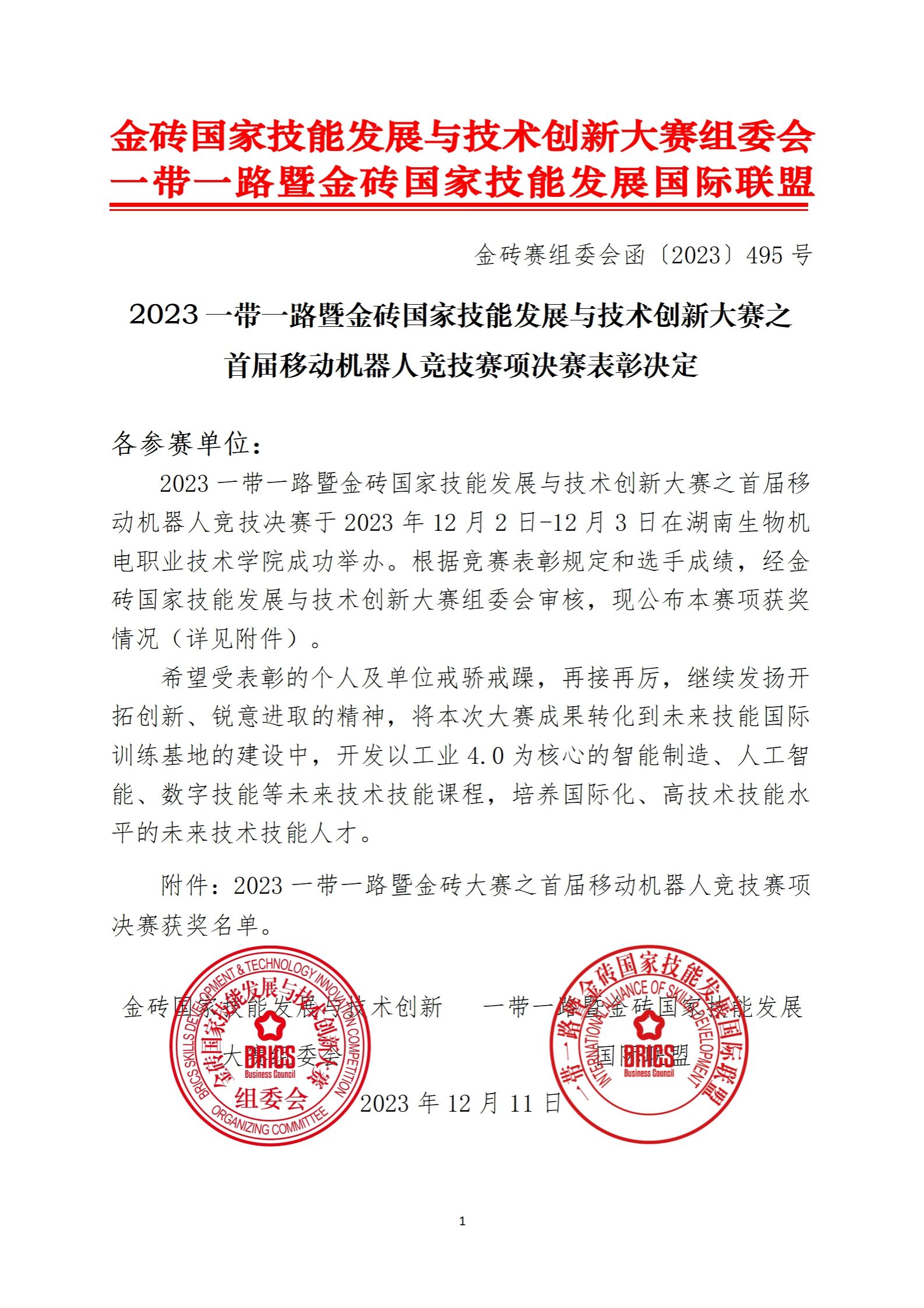 据悉,金砖国家技能发展与技术创新大赛是2017年金砖国家最高领导人会晤筹备委员会认可,经中华人民共和国外交部备案,金砖国家工商理事会批准的国际大赛,自2017年起已成功举办六届,累计20余万人次参与竞赛。(撰稿:刘宇程 审稿:陈永当)