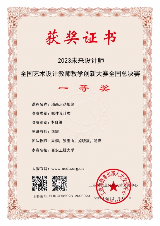 日前,2023年未来设计师·全国艺术设计教师教学创新大赛(教创赛)课程赛道全国总决赛在上海工程技术大学圆满落幕。beat365新媒体艺术学院燕耀等教师组成的团队主讲《动画运动规律》课程通过现场答辩,获得2023年未来设计师·全国艺术设计教师教学创新大赛(教创赛)课程赛道全国总决赛一等奖。