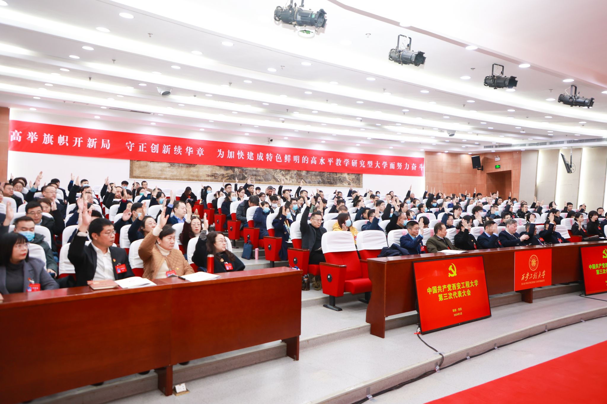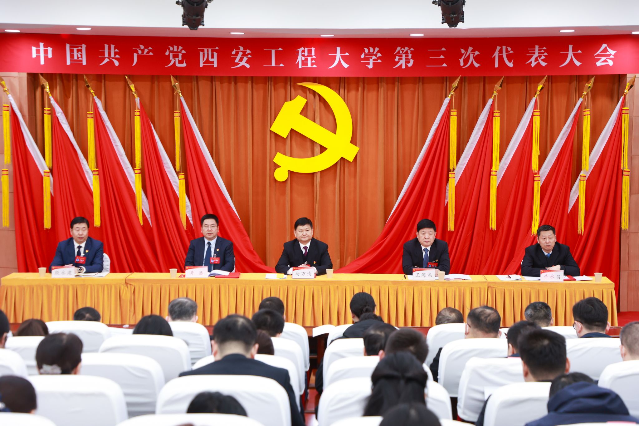 1月4日上午,中国共产党beat365官方网站第三次代表大会预备会议在临潼校区图书馆一楼报告厅召开。会议由校党委书记马万清主持,校党委副书记、校长王海燕,校党委副书记井浩,校党委副书记、纪委书记、监察专员辛永昌,校党委副书记殷永建在主席台就坐,全体正式代表参加会议。