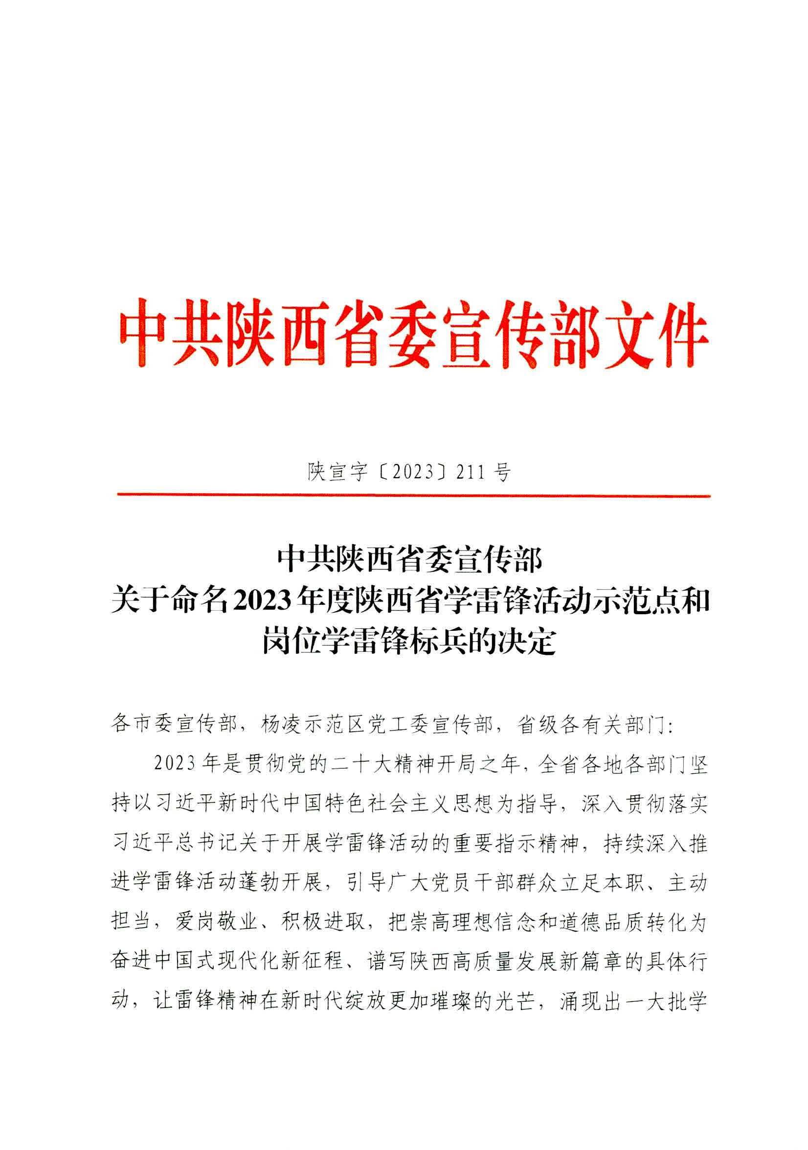 近日,陕西省委宣传部公布了《关于命名2023度陕西省学雷锋活动示范点和岗位学雷锋标兵的通知》,beat365驻村干部张勇被评为“陕西省岗位学雷锋标兵”。此次表彰共评选出陕西省学雷锋活动示范点39个,陕西省岗位学雷锋标兵69名。