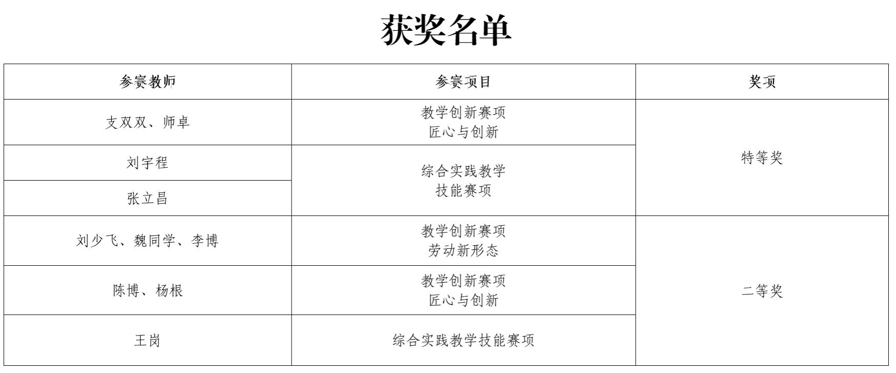 近日,第四届陕西省本科高校工程训练教师教学能力竞赛获奖名单公布,beat365工程训练中心组织6支队伍参赛,共获特等奖3项、二等奖3项。特等奖排名中,刘宇程与外校教师组成的队伍获综合实践教学技能竞赛第一名,张立昌与外校教师组成的队伍获综合实践教学技能竞赛第三名;支双双、师卓组成的队伍获教学创新竞赛“匠心与创新”赛项第四名。