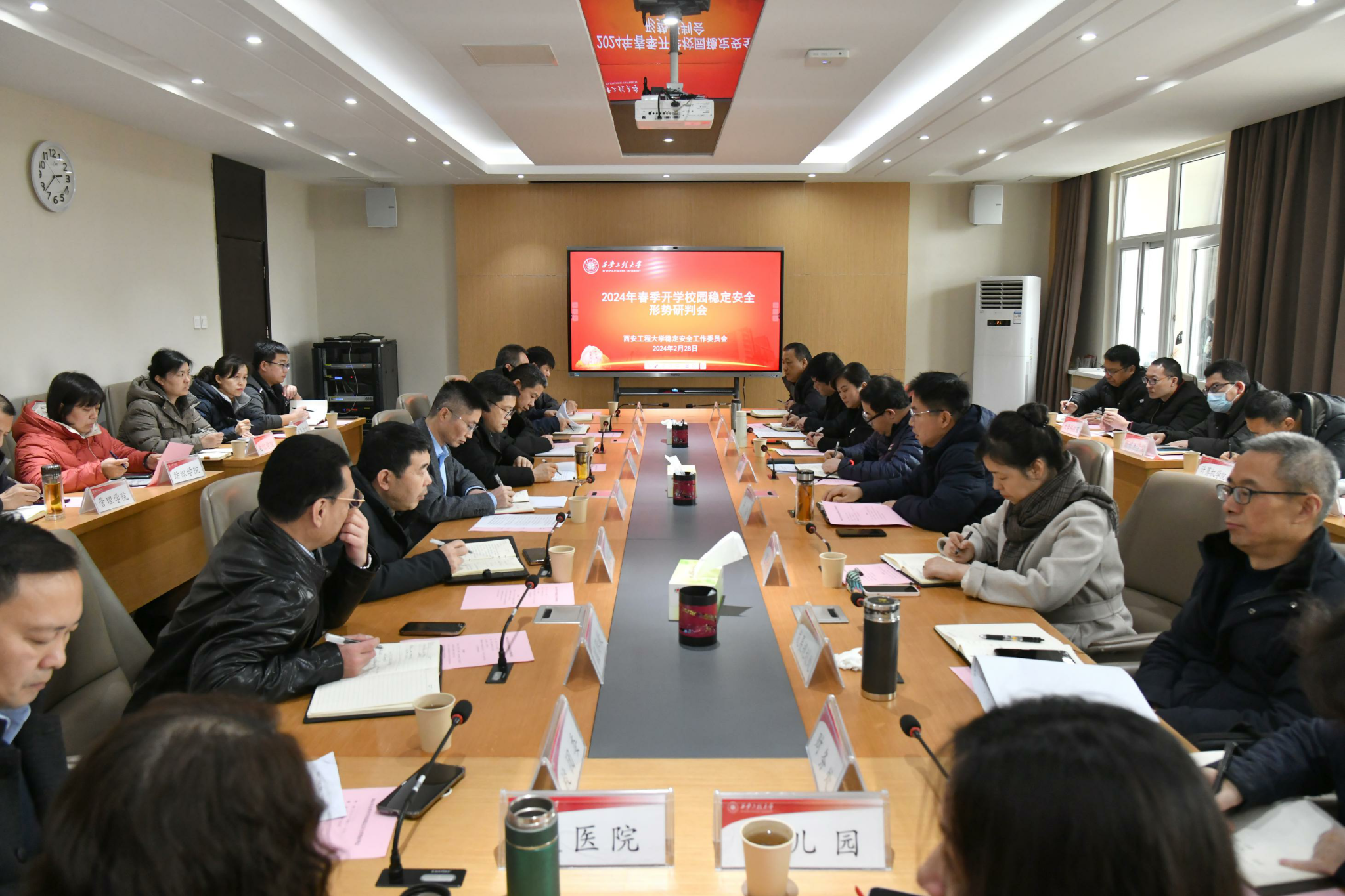 在省教育厅等三部门春季开学安全综合督查及beat365春季开学安全大检查结束后,2月28日,校稳定安全工作委员会在临潼校区举行2024年春季开学校园稳定安全形势研判会暨新学期学生教育管理工作部署会,传达学习贯彻上级文件精神,通报相关情况,对开学及近期学校稳定安全形势进行研判,部署相关工作。校稳定安全委员会“一办六组”成员单位负责人、相关单位负责人、各学院党委副书记、学生主管参加会议,会议由校党委副书记井浩主持。
