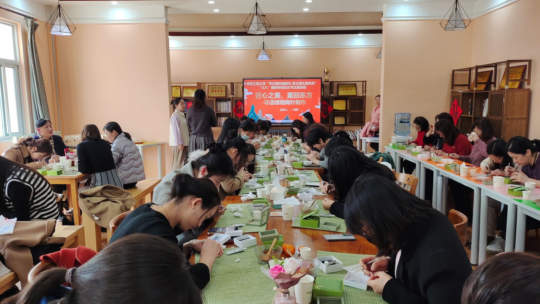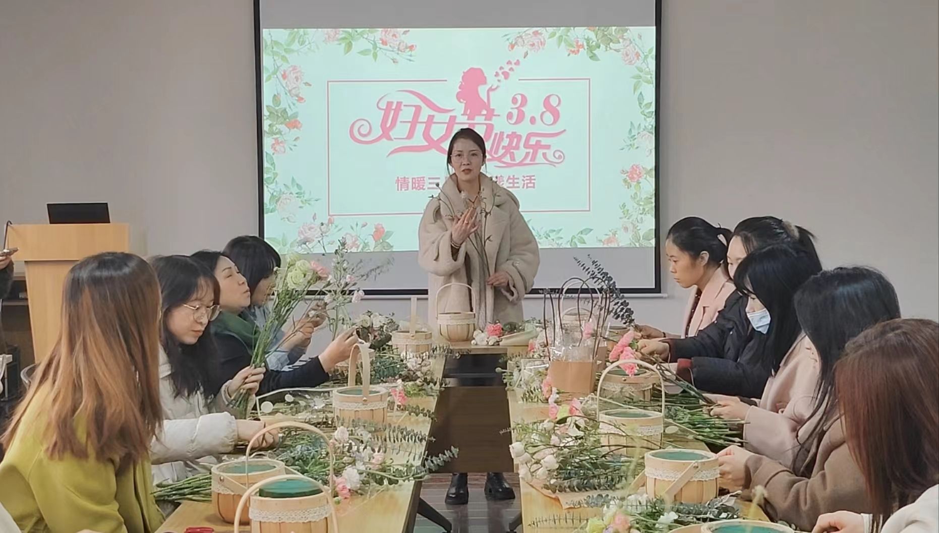 纺织科学与工程学院分工会、新媒体艺术学院分工会、校医院联合举办饮食健康知识讲座;理学院分工会特邀请交大一附院核医学科李欣如博士做甲状腺健康保健知识讲座,为女教职工们带来很好的医学科普。材料工程学院、服装与艺术设计学院分工会分别举办“花韵绽芳华,巾帼向未来”插花体验活动,通过专业花艺师示范和讲解,女教职工们纷纷动手实践,聚精会神地投入到插花艺术中,创作出独具特色的插花作品。