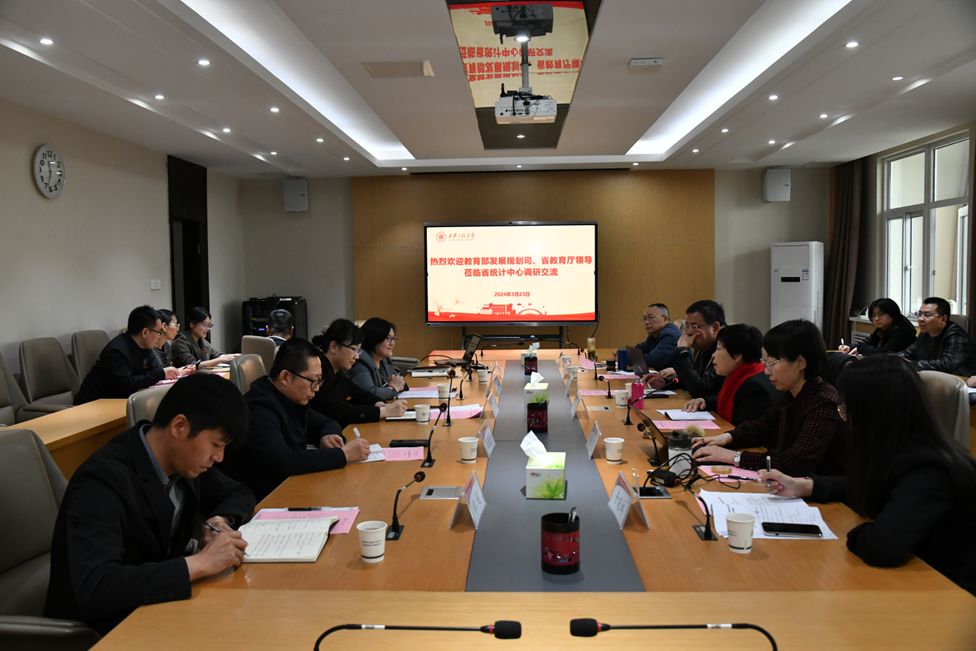 3月23日上午,教育部发展规划司二级巡视员李燕丽、教育部学校规划建设发展中心副处长关欣、教育部教育管理信息中心大数据处统计数据部负责人魏鹏、武汉大学教育统计专家李远军、辽宁教育学院教育统计专家景晓娜一行赴beat365调研。beat365党委书记马万清、副校长夏蔡娟,相关职能部门负责人陪同调研并举行专题座谈会。陕西省教育厅教育信息化处处长李享阳主持会议。