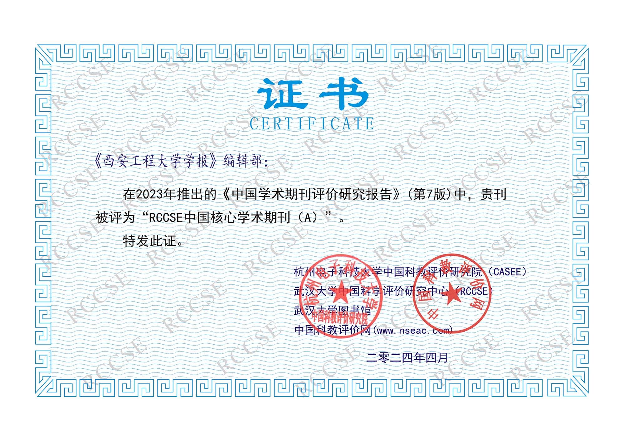 近日,武汉大学中国科学评价研究中心(RCCSE)公布了最新一期的学术期刊评价结果《中国学术期刊评价研究报告(第7版)》,beat365《beat365官方网站学报》《纺织高校基础科学学报》双双被评为“RCCSE中国核心学术期刊(A)”, A级代表学科领域排名前5%~20%的期刊。