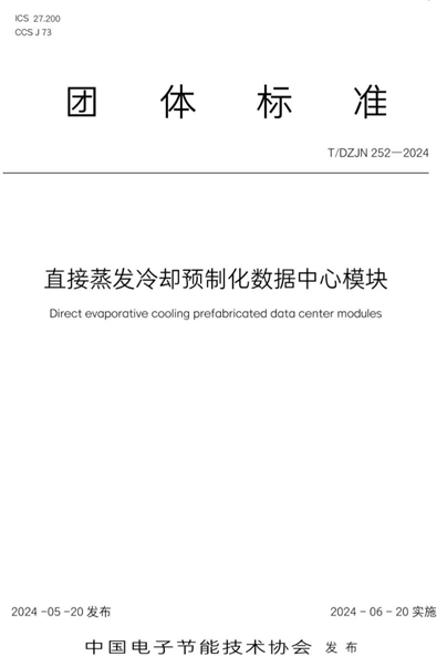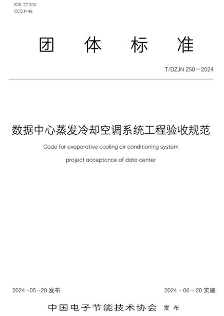 《数据中心间接蒸发冷却塔》(T/DZJN 249-2024)规定了数据中心间接蒸发冷却塔的术语和定义、型式与基本参数、技术要求、试验方法、检验规则以及标志、包装、运输、贮存等。适用于具有空气预处理模块,利用蒸发冷却原理,以水、空气为介质,能根据数据中心需求产出相应水温、为液冷工作介质降温或供冷凝器散热的复合式间接蒸发冷却塔,以其他液体作为介质的间接蒸发冷却塔的制造也可参照。《数据中心蒸发冷却空调系统工程验收规范》(T/DZJN 250-2024)适用于数据中心新建及改扩建工程,包括蒸发冷却冷风系统与蒸发冷却冷水系统等正式投入使用前的施工验收工作。《数据中心自然蒸发冷却气象参数》(T/DZJN 251-2024)规定了数据中心自然/蒸发冷却空调系统与设备节能设计计算用气象参数,各类数据中心风侧、水侧及制冷剂侧蒸发冷却空调系统和自然冷却系统,所提供的气象参数适用于自然/蒸发冷却空调的设计计算与设备选型。《直接蒸发冷却预制化数据中心模块》规定了直接蒸发冷却预制化数据中心模块的运行模式、安装方式及气流组织、技术要求、试验方法、检测规则、标志、包装、运输和贮存等,适用于能够与数据中心直接对接的全新风直接蒸发冷却预制化模块产品。