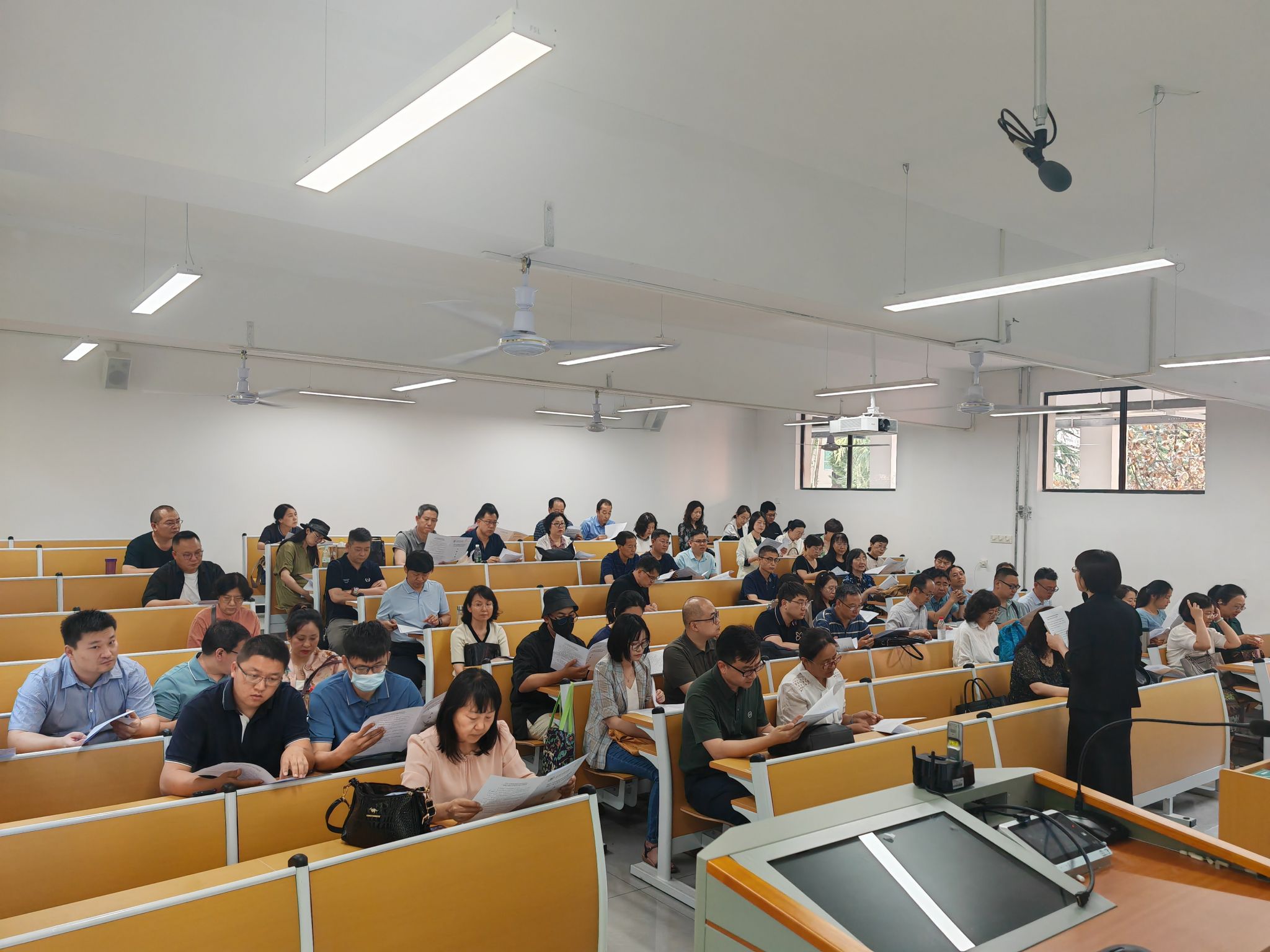 学校高度重视本次考试,成立技能考试工作小组,制定考试工作实施方案,组织召开部门工作协调会,细化考试流程。开考前,人事处(教师发展中心)组织召开全体学科评议组及工作人员培训会,对本次考试基本情况、考试内容形式、考试流程以及评分规则进行了全面培训,并就考风考纪提出明确要求。根据《关于做好2024年全省高校教师专业技能考试工作的通知》文件精神,本次考试分为课程介绍、内容讲授两个环节。申请教师资格认定的青年教师就所任课程的内容体系、教学目标、重点难点、教学方法等方面进行讲授,学科组评委结合青年教师的授课表现,共同对其教学设计、教学组织、板书设计、语言教态以及教学特色等方面进行综合评价和量化评定。现场参试教师积极投入,专家评委严谨细致,为参试教师提供了宝贵的教学改进建议。针对特殊考生需求,优化考试服务,设置特殊考场,本次考试一名考生因腿部骨折,肢体行动不便,考点为他提供了特殊考场服务等便利举措,送上人文关怀。