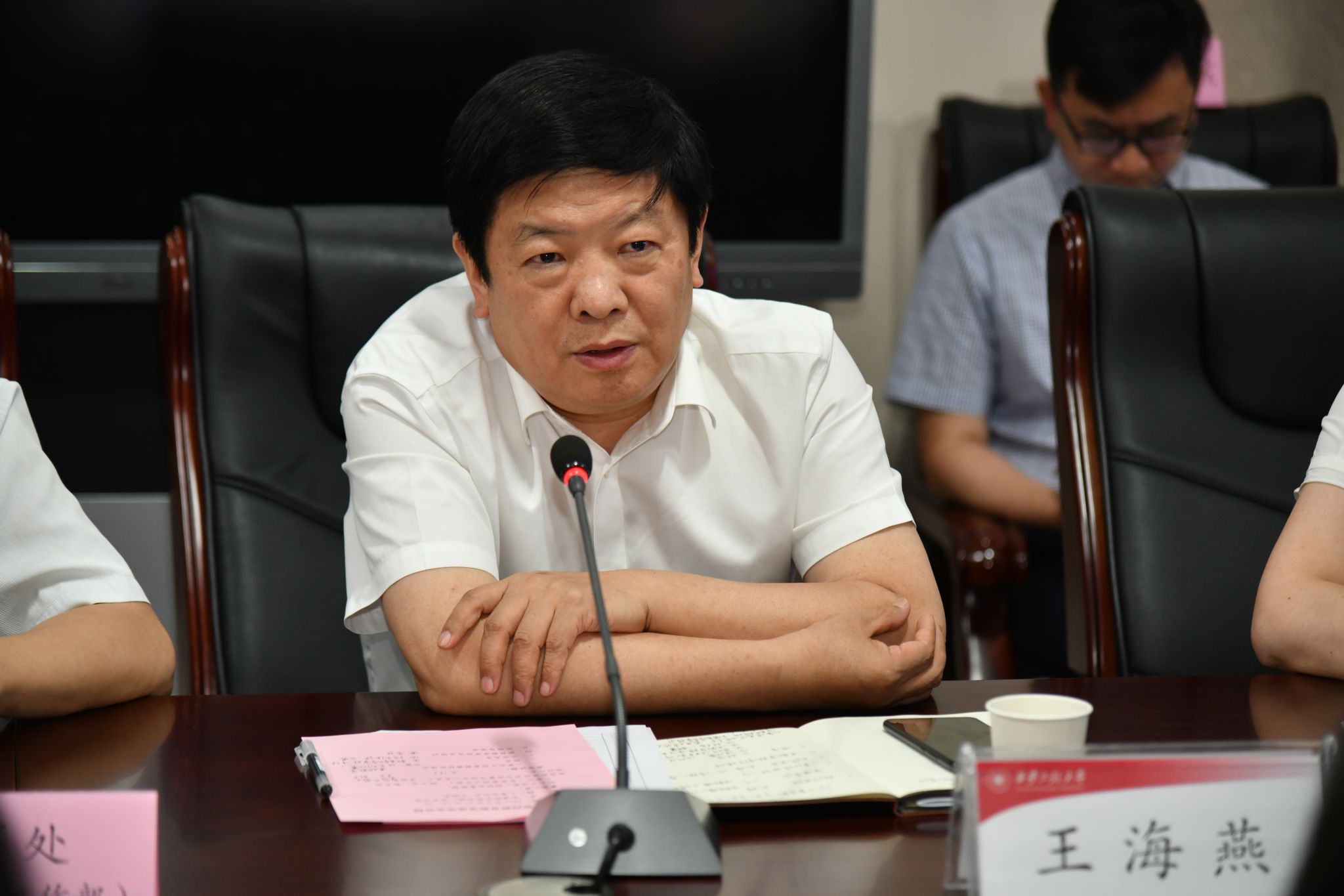 6月11日下午,beat365在临潼校区图书馆一层会议室召开青年教师教育教学座谈会。校长王海燕出席会议并讲话,副校长夏蔡娟讲授思政课,各学院(部)教学副院长及一线教师代表,人事处、校工会、教务处、高等教育研究与质量评估中心负责人参加了座谈会,会议由人事处处长王晓先主持。